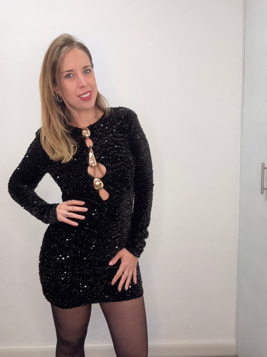 Abito paillettes con dettagli oro - abbigliamento - Stilosa