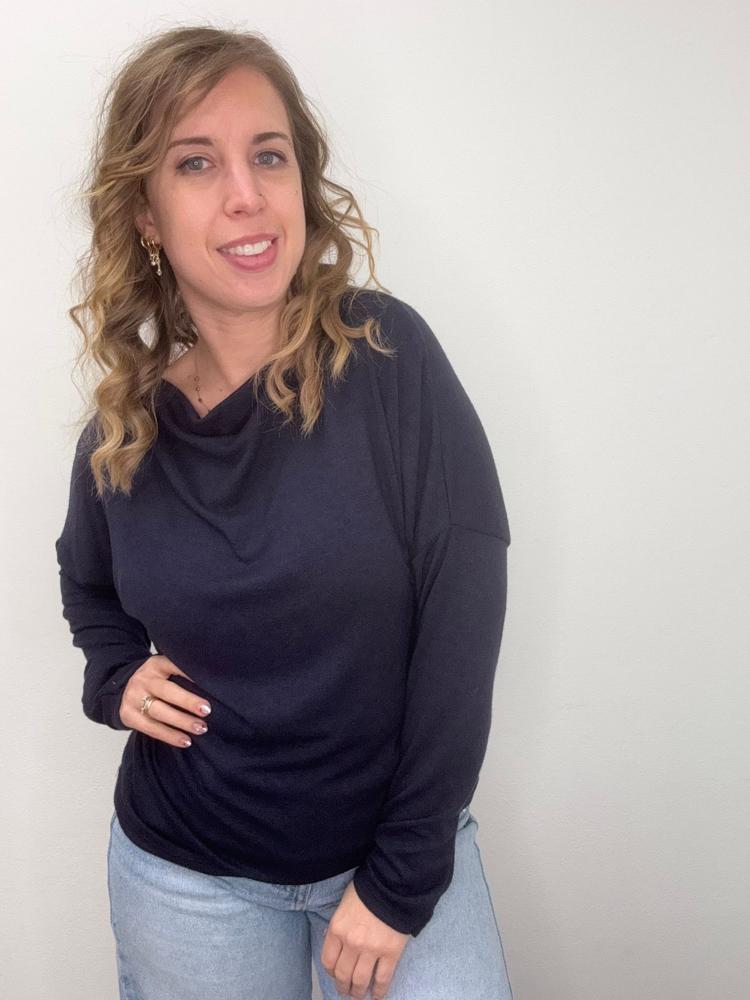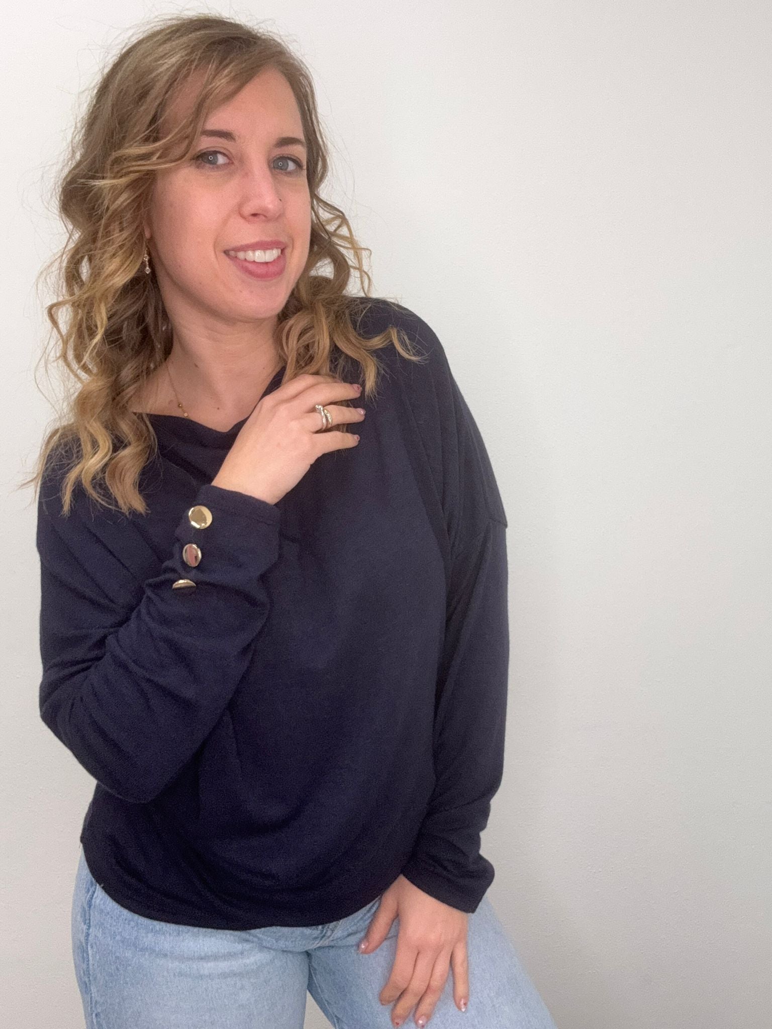 Maglia scollo barca con bottoni