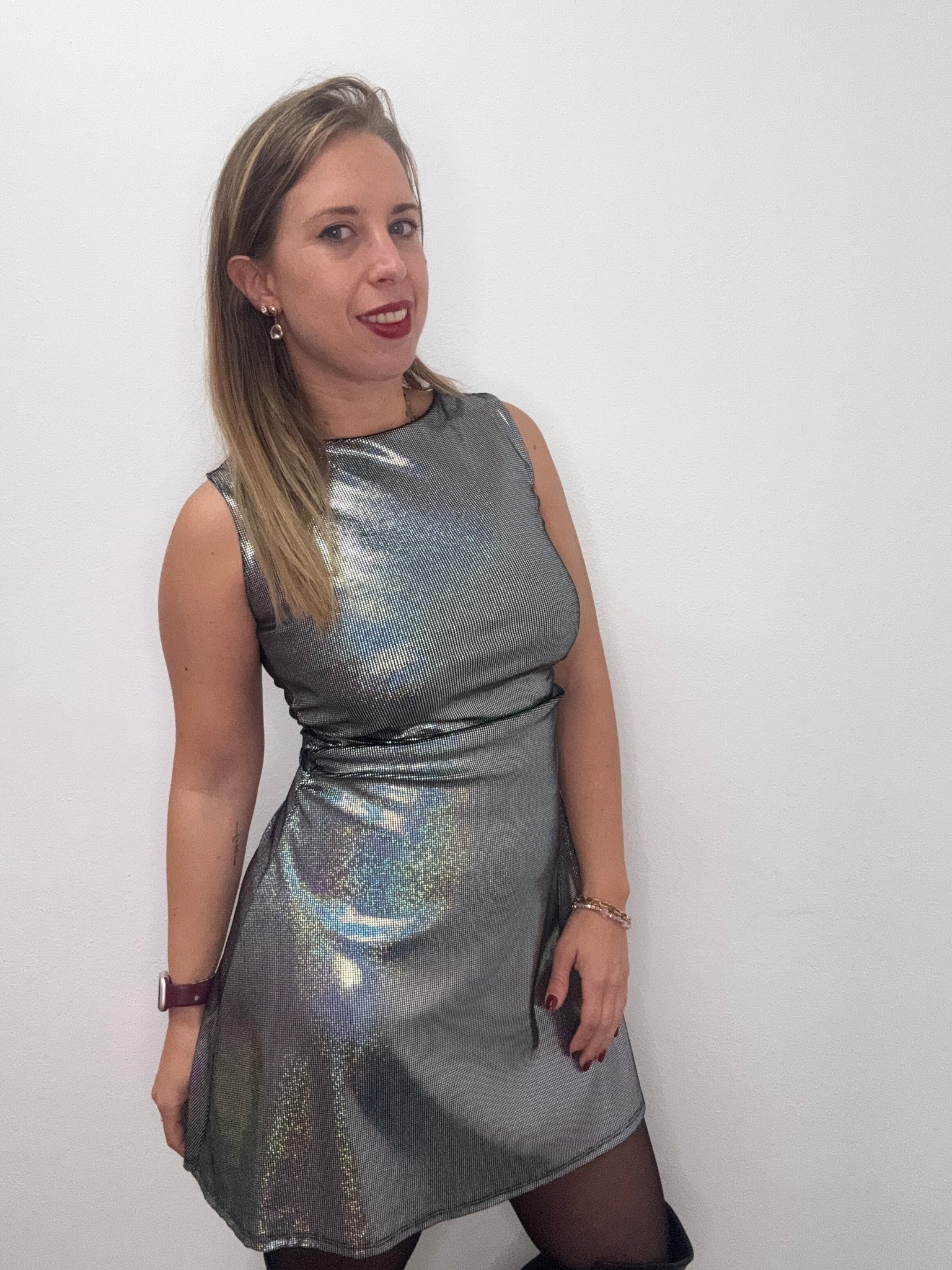 Abito ripreso silver. Taglia unica veste fino una 42/44
