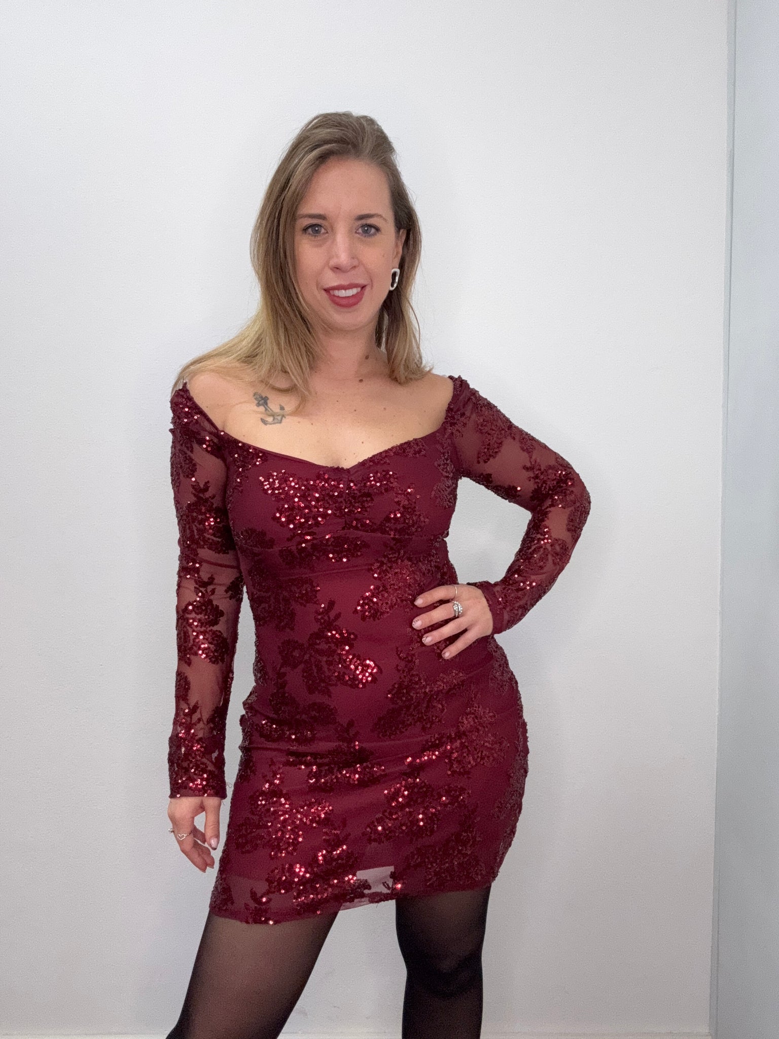 Abito scollo quadro con paillettes. Taglia unica veste fino una 42/44