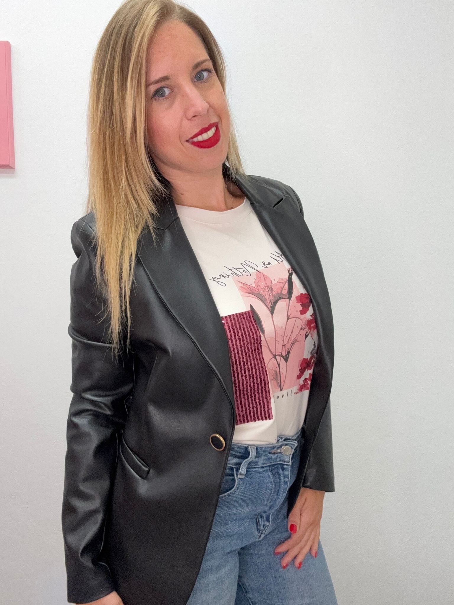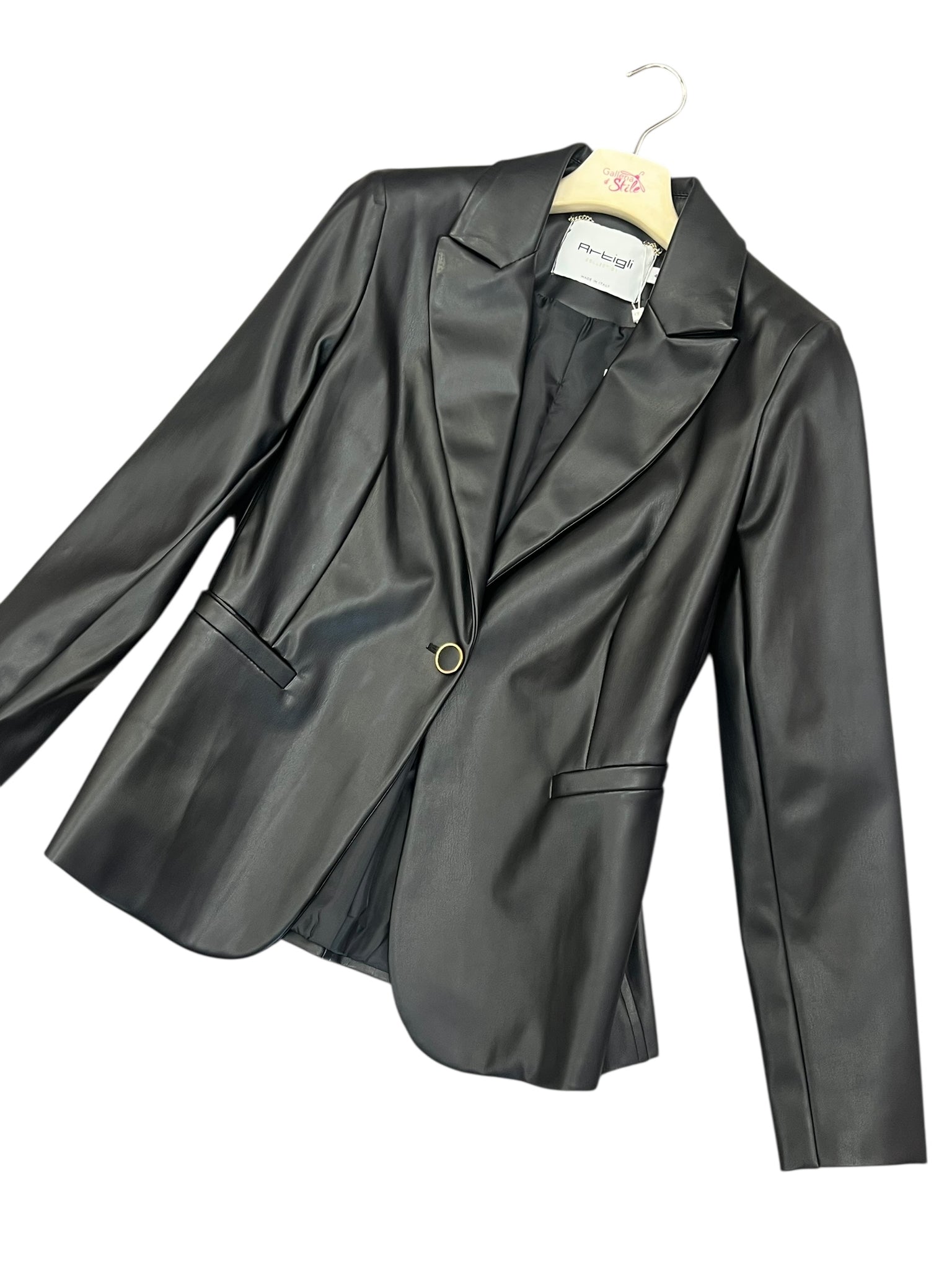 Giacca ecopelle blazer. Vestibilità piccola se lo si vuole chiudere