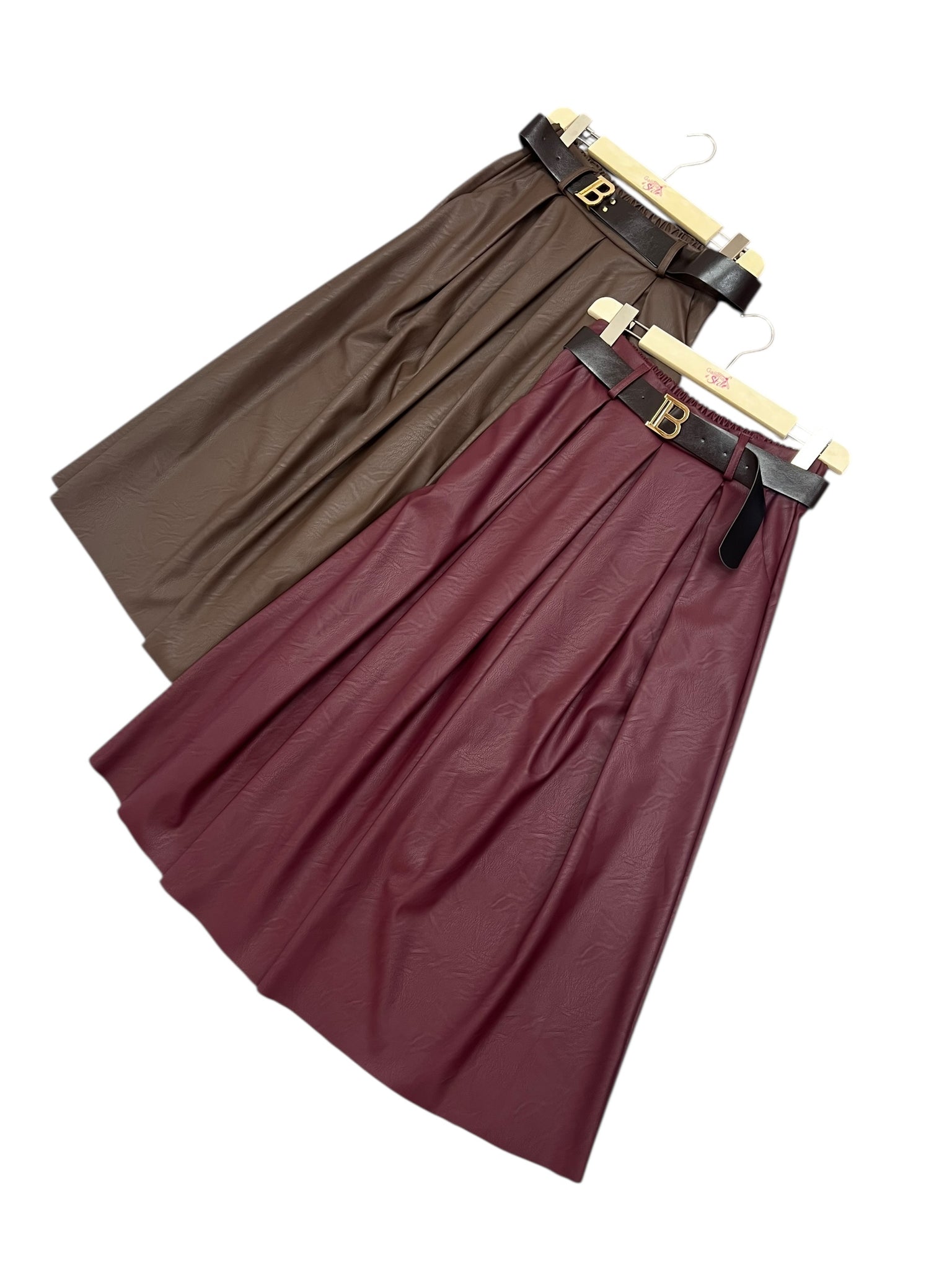 Gonna midi a ruota in ecopelle. Taglia unica veste fino una 46
