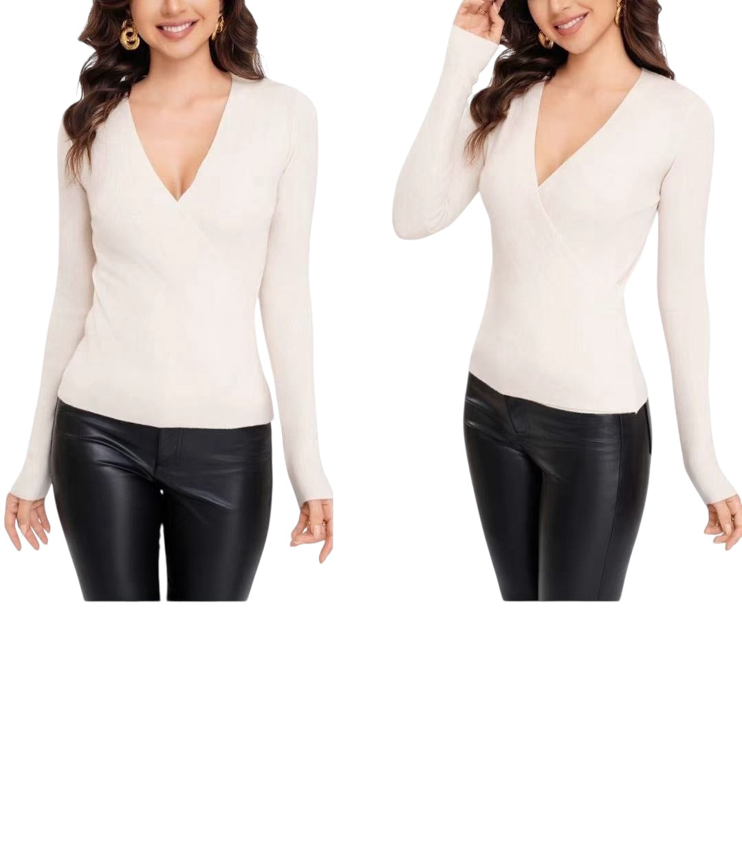 Maglia stretch con scollatura ad incrocio - abbigliamento - Stilosa