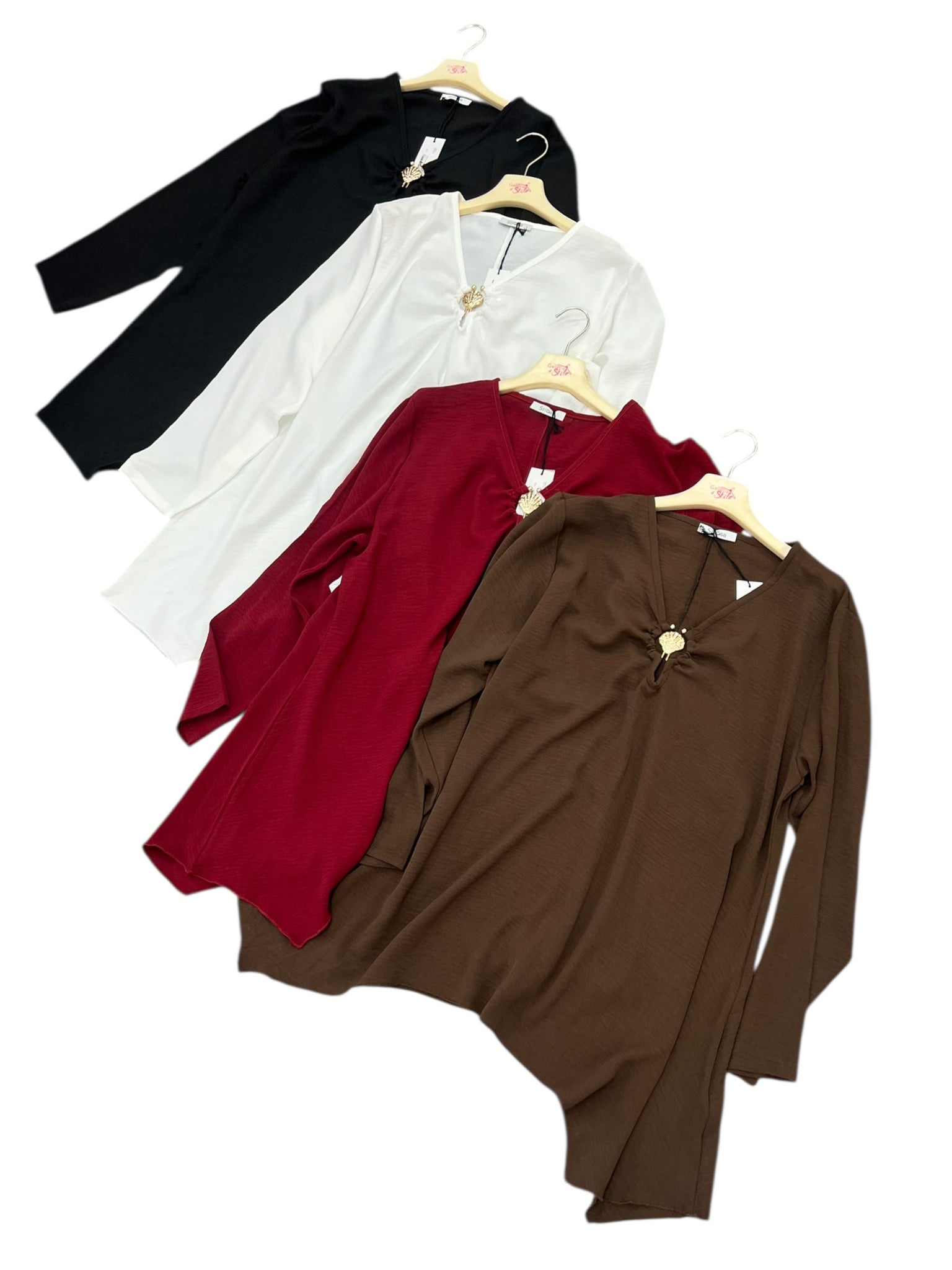 Maxi camicia con ripresa centrale asimmetrica. Taglia unica veste da una 44 ad una 52