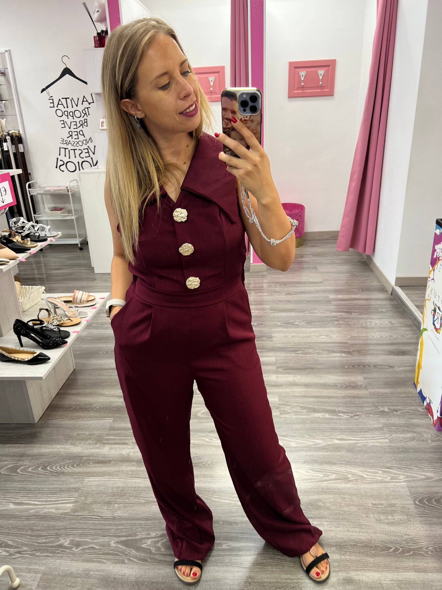 Tuta con 3 bottoni e colletto. Taglia unica veste fino una 44/46
