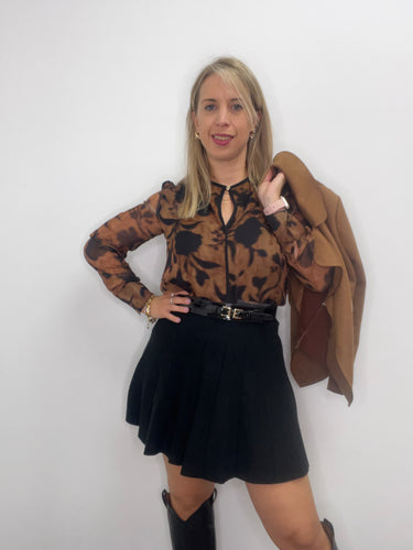 Blusa fantasia con piping in contrasto - abbigliamento - Artigli