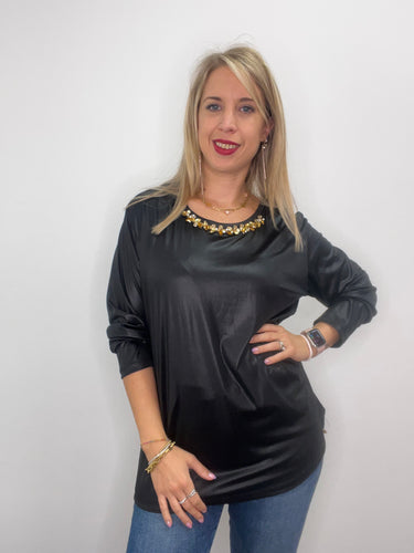 Maglia con applicazione scollo - abbigliamento - Artigli