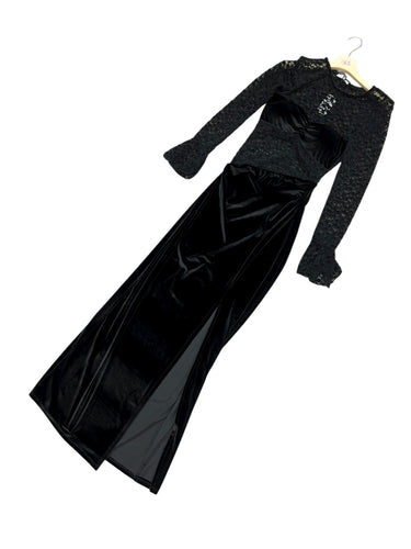 Abito lungo pizzo e velluto - abbigliamento - Stilosa