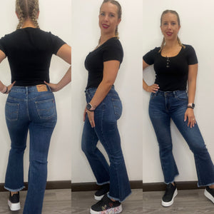 Jeans trombetta sfrangiato. Per consulenza sulla taglia scrivici al numero whatsapp 3276205197